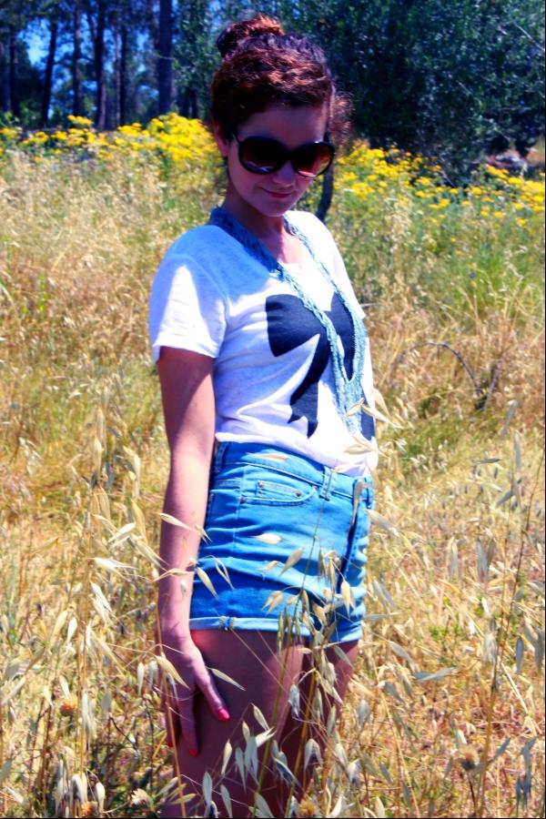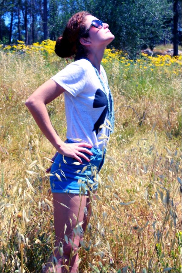 אני מאוד אוהבת את הסגנון הקליל הזה מכנסי ג'ינס קצרים עם טי שרט בפנים .